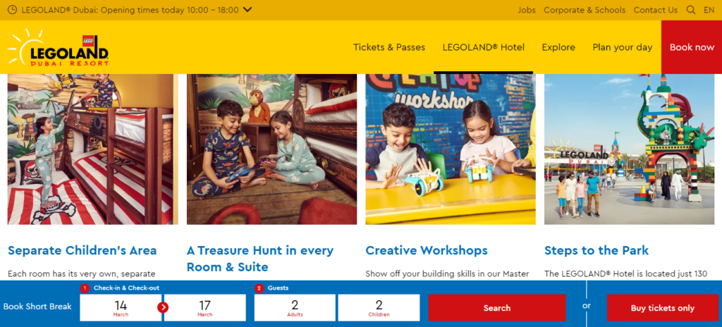 Produce a high-quality, engaging, and effective site that meets the needs of both the company and its users. The website must be visually engaging, with bright colors and playful design elements that convey the excitement of the park. As a theme park and resort, LEGOLAND is constantly evolving, with new attractions and events being added all the time. The website must be able to keep up with these changes and provide accurate and up-to-date information to visitors.